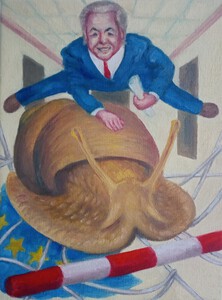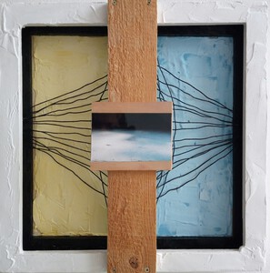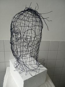 Installatie. Acryl, gips hout, stalen elementen, plastic wieltjes, touw en ijzerdraad.