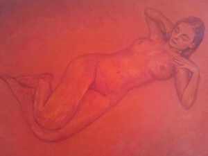 Verlangen IV, olieverf op linnen op paneel, 2006. Het schilderij is rond en in nieuwstaat. Het werk is gesigneerd 'R. Zikel 2006'
