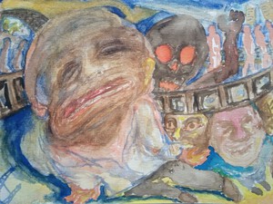 2026Een landschap met figuren dat rechtstreeks refereert aan een nieuwsfeit. Het feit gaat voornamelijk over het duister waarin iemand met slechte bedoelingen genadeloos zijn machtspositie misbruikt voor eigen gewin. Het gaat voornamelijk over het menselijk vermogen door en door slecht te zijn en daarbij tot de meest gruwelijke misdaden in staat is.